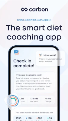 What's more, Carbon will adjust the plan as you progress to optimize your results. If you hit a plateau or stall, Carbon will make adjustments to keep you progressing towards your goal, just like any good coach would. Our coaching system uses the latest techniques in nutrition science to make sure you get the best results possible.