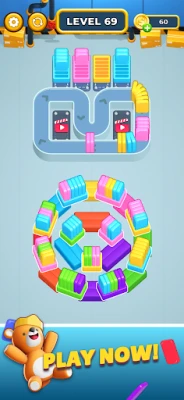 🔹When a matching card finds its color-coded tray, it slides in automatically. Strategically tap the trays to release cards onto the belt, aiming to fill each waiting tray with its corresponding colors and clear it from the board.