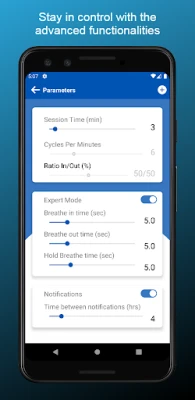 The expert mode allows you to specify the exact breath-in, breathe-out time and adds a holding time.