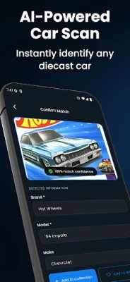 Scan any diecast car instantly using your camera. Identify Hot Wheels, Matchbox, Greenlight, and more without manual search.