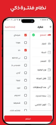 🔍 بحث متقدم وفلترة دقيقة ابحث بسهولة عن السيارة التي تناسبك باستخدام أدوات تصفية مثل النوع، الماركة، الموديل، السعر، الموقع الجغرافي، وغيرها.