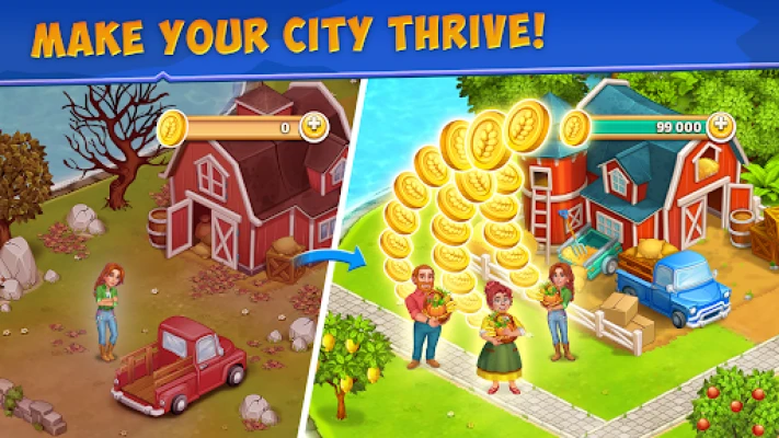 Grow wheat and corn, cow and chicken on village farm near city township. Build a dream city - only on your decision depends on what your city will be!