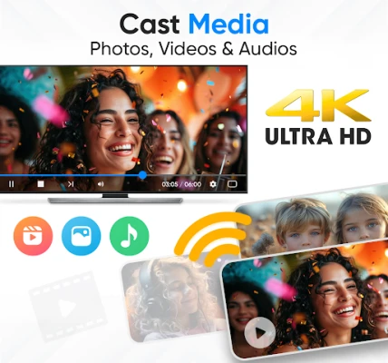 This Miracast screen mirroring free app doesn't just mirror your Android device's screen onto your TV, but also elevates your viewing experience. By utilizing the Miracast cast to tv - Screen Mirroring app, you can effortlessly connect phone to TV screen, allowing you to stream movies, sport games or anything you like directly from your phone for an enhanced, large-screen viewing experience.