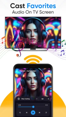 Enhance your TV experience within Chromecast app.You can cast photos, videos, video streamer, web-video, web-url & music directly from your Android phone to your smart TVs and enjoy on the big screen.