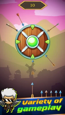 Arrow Shield Challenge: Test your aim and strategy by firing arrows at a rotating shield, ensuring each arrow lands in a unique spot.