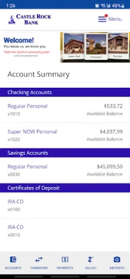 Bank on the go with Castle Rock Bank Mobile Banking App. Manage your accounts from your mobile device when it’s convenient for you. The Castle Rock Bank Mobile Banking App combines the benefits of online banking with the power of phones and tablets, providing quick access to account information.