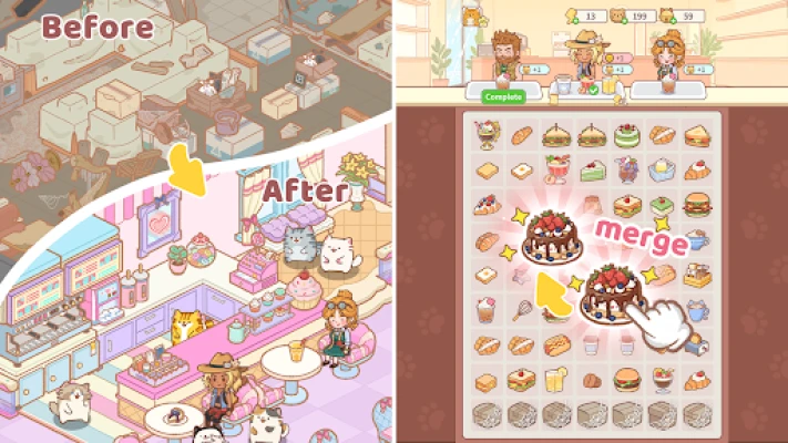 - Merge & Create: Drag, combine, and upgrade items to unlock new recipes, tools, and decorations.