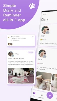 - Create journal entries - Manage multiple cat profiles - Set reminders for all the important moments.
