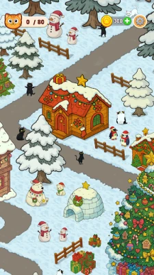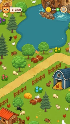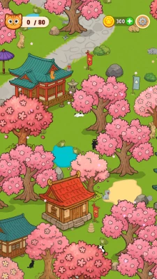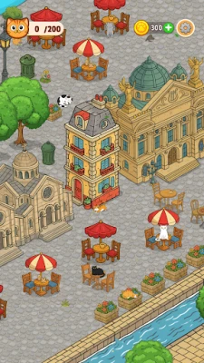 Each stage is set in a charming, illustration-style background filled with playful details. Whether behind barrels, inside trees, or perched on rooftops—these sneaky cats can hide anywhere. Keep your eyes sharp and your focus steady!