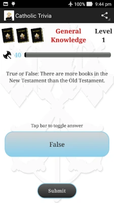 This is a trivia game which tests your knowledge of Sacred Scripture. The more you play, the more you learn about the Bible. The large database of questions provides replayability in addition to the opportunity to employ the knowledge you gain from your mistakes to advance further in the game.