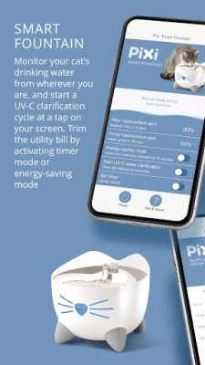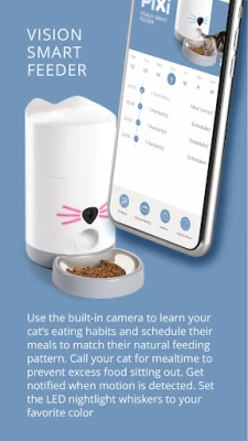 This free Catit® PIXI® mobile app can be used with the Catit® PIXI® Smart series: The PIXI® Smart Fountain, PIXI® Smart Feeder, PIXI® Smart 6-meal Feeder, PIXI® Smart Mouse Camera, and the PIXI® Vision Smart Feeder.