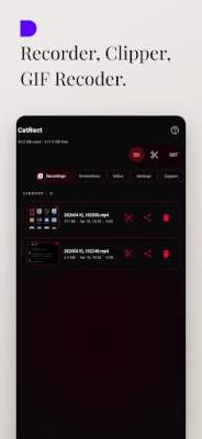 • Your recordings, screenshots, and GIFs are saved locally on your phone (under folders like Movies/CatRec and Pictures/CatRec unless you point saves elsewhere where the system allows).