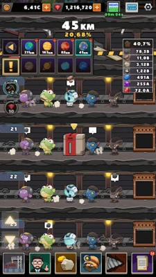 Unlike other clicker idle games, Cave Driller does not required touch frequently, thus units will be mining automatically without clicking and touching, and drills will dig the ground to expand mine.