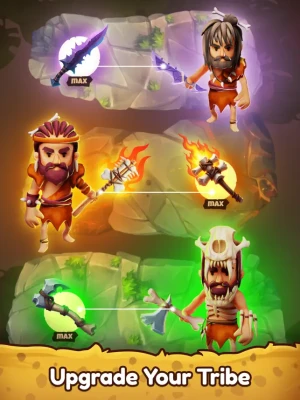 In Caveman Life: Tycoon Simulator, you can download just about everything: weapons workshop machines, helpers, shaman's tent, warriors, the main character, dinosaurs, a tribe and much more. Increase your power by going hunting and finding new legendary weapons and resources.