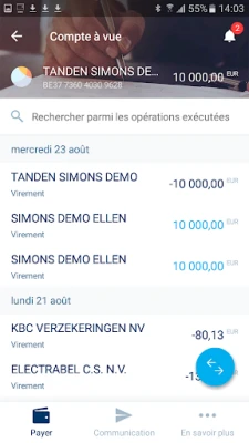 • Virements simplifiés: effectuez rapidement et facilement des virements entre vos propres comptes et vers des tiers dans la zone SEPA.
