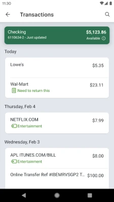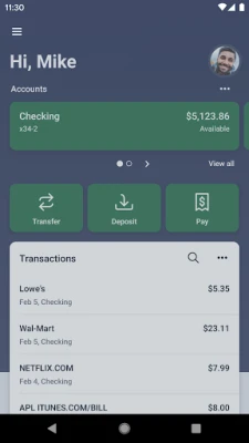 Multi-Account Aggregation: View all of your financial information (balances, transaction history, merchant spending averages) in one place for on-the-go organization.