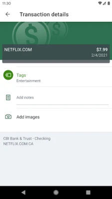 Add Tags, Notes, Images & Geo-Information: By enhancing transactions with custom tags, notes or photos of a receipt or check, you have the ability to stay organized and find exactly what you’re looking for when searching through your finances.