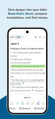 • Free access to popular Bible translations (NLT, KJV, ESV, NASB, and more)