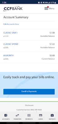 If you have questions related to CCFBANK Mobile, please contact a Customer Service Representative at (800) 590-9920.