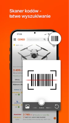 Aplikacja została zaprojektowana z myślą o wygodzie użytkownika – prosty układ, przejrzyste kategorie i łatwy dostęp do kluczowych funkcji sprawiają, że korzystanie z niej jest szybkie i bezproblemowe. Wbudowany skaner kodów kreskowych umożliwia szybkie sprawdzanie cen i dostępności produktów widzianych w sklepach stacjonarnych. Produkty możesz też wyszukiwać klasycznie – wpisując nazwę – lub za pomocą zdjęcia. Wystarczy jedno ujęcie, a aplikacja rozpozna przedmiot i wyświetli pasujące oferty.