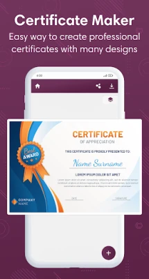 In the Professional certificate app, you can make amazing certificates and you can save them in your device gallery with HD quality.