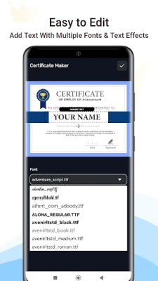 Adjust the placement of text boxes, logos, signatures, and decorative images effortlessly. The app allows you to experiment with different design arrangements to produce certificates that are unique, eye-catching, and perfectly tailored for your needs.