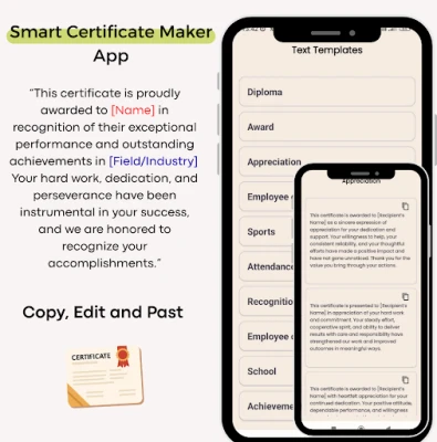 Certificate Templates & Maker is a fast, simple certificate maker app and Certificate Maker & Editor app that helps you create professional certificates in minutes.