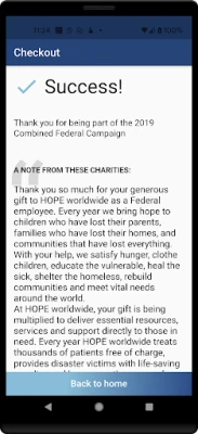 The Combined Federal Campaign (CFC), hosted by the U.S. Office of Personnel Management (OPM), promotes and supports philanthropy through a program that is employee-focused, cost-efficient, and effective in providing all federal employees and retirees the opportunity to improve the quality of life for all. Through the CFC Giving Mobile App, donors Can Be the Face of Change by supporting their favorite charities with monetary and volunteer gifts and locating CFC events like charity fairs and, fundraisers.