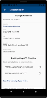 New features to the 2021 Campaign: The mobile app now allows donors to have the same giving options as the online pledge experience. Donors can search and donate to charities to make recurring or one-time pledges using payroll, bank account, or credit card information. Employee pledges of volunteer hours can also be made to charities that have volunteer opportunities (identified with hand icons). The app supports Touch ID and Face ID for easy and secure access to giving accounts.