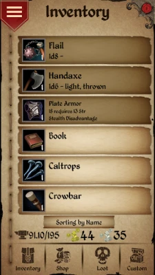 - Inventory (keep track of weight, gold, and several common items)