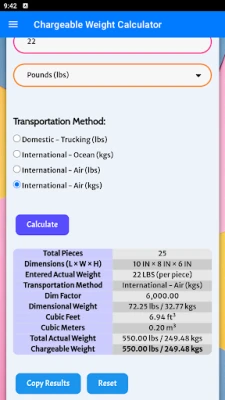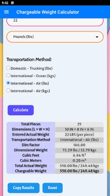 This beautiful App will let you calculate Chargeable Weight in seconds.