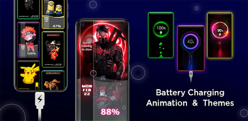 β Battery Charging Animations β Choose from a collection of cool animations, including Cartoon, Shapes, Neon, and more.