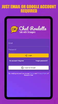 It is a great chance for you to find new friends or love from Chat Roulette. Unlike other apps, Chat Roulette gives you a chance to talk with people all over the world and does not limit you on your nearest location. Chat Roulette does not require you to give many information about you including your location. Only email is required and you can adjust your chat nickname to whatever you want! We respect your privacy and we don't gather your personal information. Be free and meet new people!