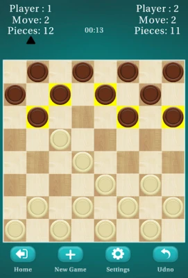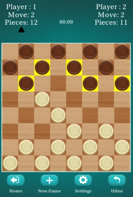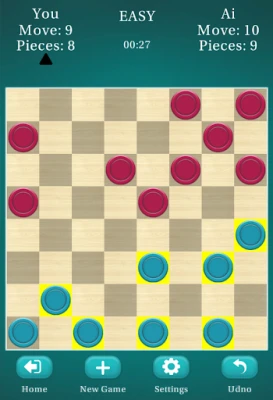 Checkers (draughts, damas in other languages) is a classic challenging board game involving strategy and played by two players or one player vs Ai.