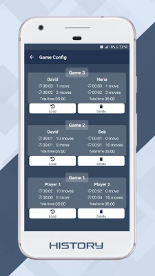 Real chess clock supports users to set up a way of calculating the time suitable for each player's play (timer set, chess clock time control). Users can change the total match time, delay time and added time will be calculated after some moves specified by the player. These settings will be saved for easy use in the next game.