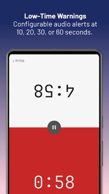 Audio tap sounds on each move, with configurable low-time alerts. Choose your warning threshold: 10, 20, 30, or 60 seconds. Haptic feedback provides tactile confirmation on every move.