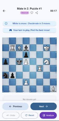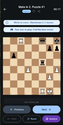 Whether you're a beginner learning basic tactics or an advanced player honing your skills, Chess Puzzle Pro adapts to your level. Start with Mate in 2 puzzles and progressively challenge yourself with complex positions.