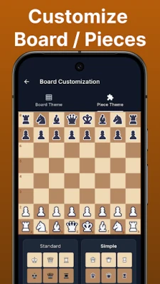 Customization is another highlight of this chess app. You can choose custom boards and chess pieces, switch between light theme and dark theme, and even export your custom board to a PNG image to share with others.