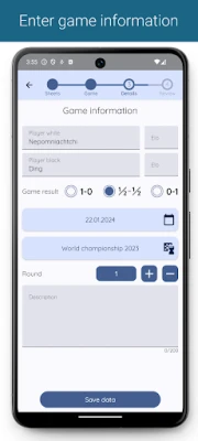 Additionally, you can add player and tournament data to a game. You can also provide further information via a description field.