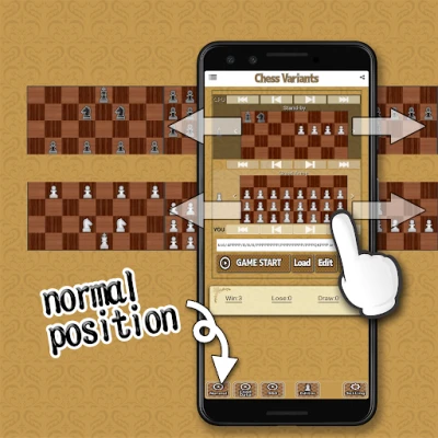 01:Normal placement 02:Even match 03:Great Army(A lot of Pawn) 04:Harem(A lot of Queen) 05:Horse Owner(A lot of Knight) 06:Iron wall 07:Spy 08:Stand-by 09:Shogi-like 10:Badger-L 11:Badger-R 12:Castling 13:The Emperor's New Clothes 14:Camp