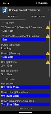 Chicago Transit Tracker is the fastest way to see when multiple buses or trains are coming. You can create and track an unlimited number of routes, and see your closest route based on your location. View CTA system maps, and follow CTA alerts, quickly and easily.