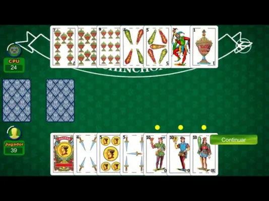 Chinchón is a matching card game played with 40 or 48 cards, and optionally with jokers. It's a variant of Gin rummy, with the same objectives: combine and meld the cards in stairs of the same suit (sequences) or in groups (sets) of 3 or more cards with the same value.