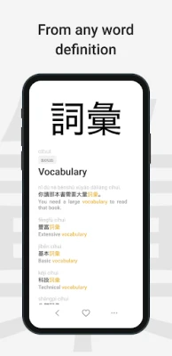 Lookup Chinese words using English, Pinyin, or Chinese and discover key example sentences for more context. Context is key when learning new vocabulary and ways to express yourself in a foreign language.