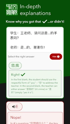 Plenty of apps can throw questions at you, but rarely is there any context. Rather than forcing you to guess why your answers were right or wrong, Chinese Challenges features detailed explanations written by our native-speaker experts.