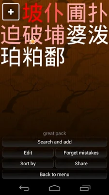 ✓ Create your own packs by searching for characters by Pinyin. You can even mix Pinyin, English and Chinese characters in one search to find as many results as possible, and one tap adds them all to your custom pack.