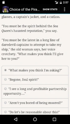 "Choice of the Pirate" is a fast-paced swashbuckler of an interactive novel by Alana Joli Abbott, author of "Choice of Kung Fu" and "Showdown at Willow Creek." Your choices control the story. It's entirely text-based—165,000 words, without graphics or sound effects—and fueled by the vast, unstoppable power of your imagination.