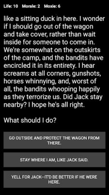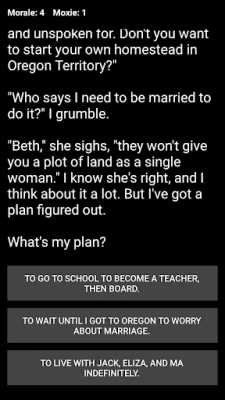 You make the choices for a pioneer in this text-based gamenovel set in the 1840's. Join Beth as she sets off with her family from her home in Missouri to travel West to the Oregon Territory.