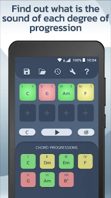 Now it's easier to compose your music, discover the best placement of the chords following a color scheme, test the sound of each chord and find a direction in a world of infinite possibilities.