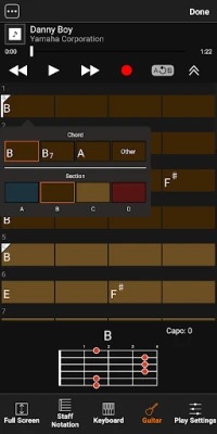 The tempo and key can be changed if desired for your practice or performance. You can even edit the chords to make your own arrangement of the song by choosing from two recommended chords or selecting the chord root and chord type.