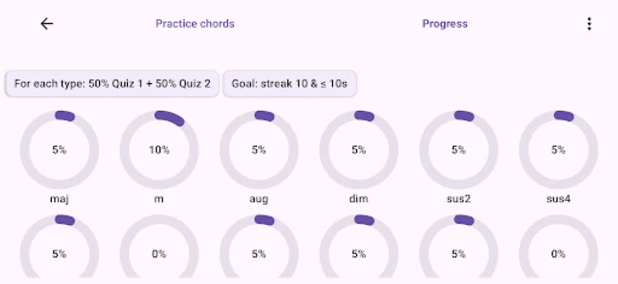 • 👂 Ear Training: hear chords in different voicings, answer quizzes, and review your progress history